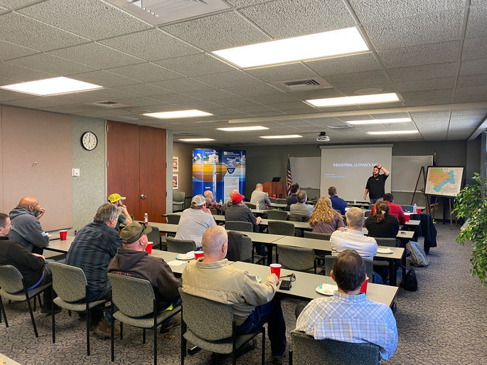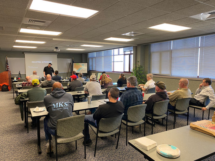 Adam Lunt of Lunt Reliability presented to our KCSMRP chapter members about the uses of Ultrasound in industrial settings. He discussed with members about the uses of different types of ultrasonic testing equipment as well as the available technology when it comes to visual and auditory aids associated with ultrasonic testing. Adam also presented on the applications of ultrasonic testing which included air leak surveys, lubrication testing and vibration analysis.